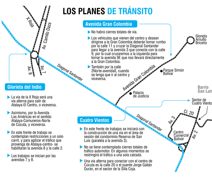 Esto, por los tres proyectos viales que están en marcha en sectores estratégicos de la ciudad como la glorieta del Indio, Cuatro Vientos y la avenida Gran Colombia, por donde se mueve el mayor flujo de vehículos de la capital nortesantandereana, en una cantidad aproximada a los 25.000 por hora.