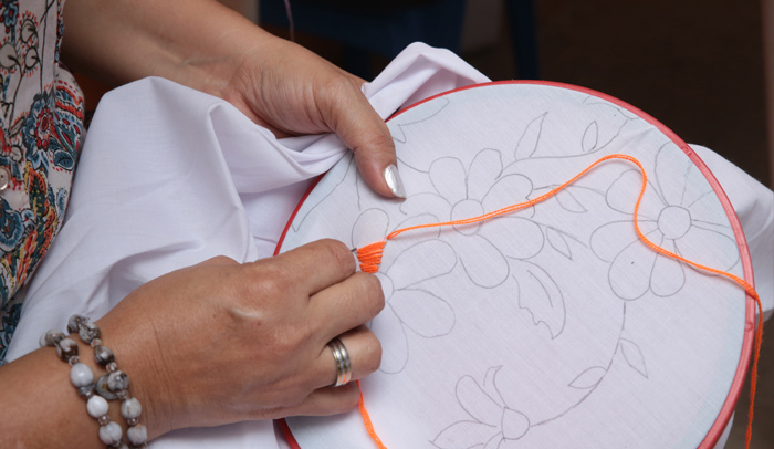 Al tiempo asistió a varios cursos que dictaban en el Centro de Atención a la Familia de La Libertad, donde perfeccionó la técnica con puntadas tales como el cordoncillo, puntada rellena, punto de cruz que se trabaja con hilo de madeja, punto atrás y puntada de ojal.