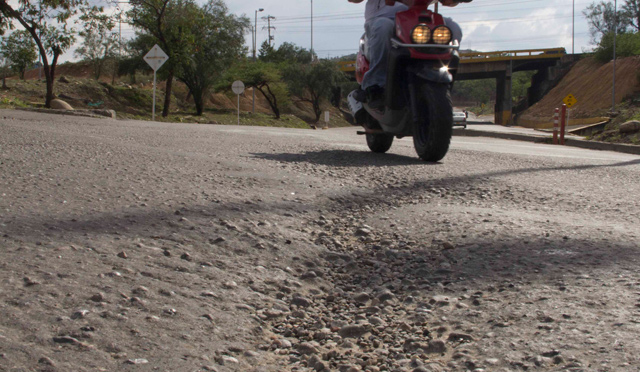 Este tramo presenta baches en ambas calzadas, además de que no cuenta con alumbrado público.