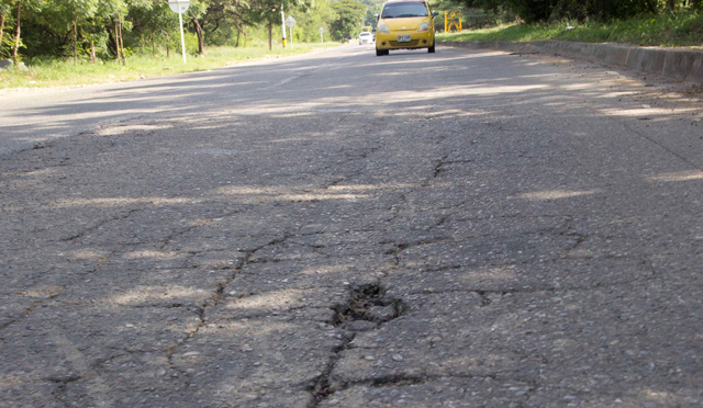 Le aparecieron grietas a la calzada, y como en las noches no hay alumbrado público, la vía ofrece peligro para motociclistas y ciclistas.