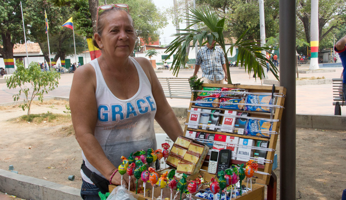 Son 20 años los que esta mujer le ha dedicado al trabajo informal. En sus inicios, se rebuscaba recorriendo las calles, pero desde 2017 decidió ubicarse en uno de los parques más importantes de Villa del Rosario. Allí vende dulces, minutos, cigarrillos, tintos, entre otros, que le ayudan a sostener a sus cuatro hijos, lo que más adora y por los que lucha en su hogar.