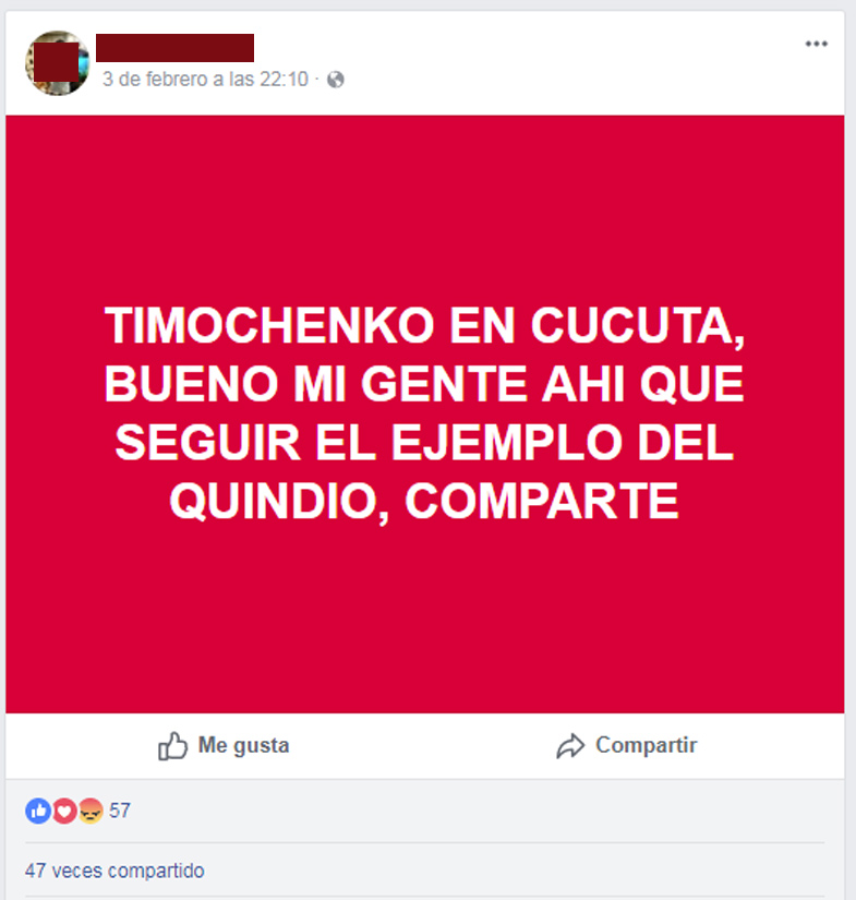 Fue así como luego de la visita del candidato presidencial por el partido Farc, Rodrigo Londoño, a la ciudad de Armenia, cientos de reacciones se vieron en Twitter y Facebook sobre la supuesta llegada del exguerrillero a Cúcuta.