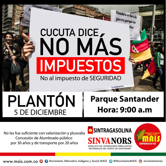 La líder social manifestó que se está convocando a manifestarse en contra esta medida, la cual golpea a los bolsillos de los ciudadanos. Es por ello que organizaron un plantón para este miércoles a las 9:00 en el parque Santander, frente a la Alcaldía, con el fin de hacerle saber al mandatario local que no es el momento de cobrar un “impuesto más”.