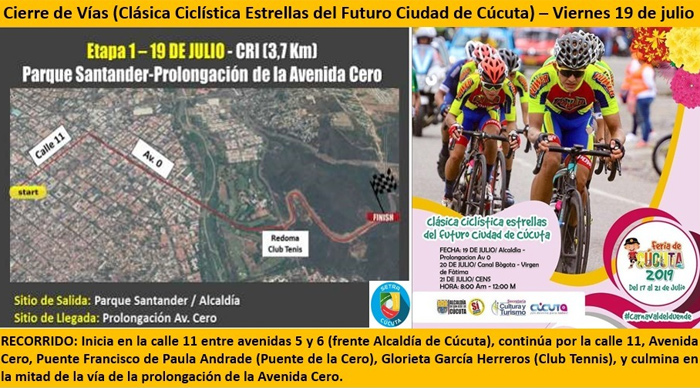 Continúan los cierres viales, debido a las actividades de la cuarta edición de la Feria de Cúcuta. Uno de ellos está previsto para este viernes por la etapa N°1 de la Clásica Ciclística Estrellas del Futuro de Cúcuta, organizada por la Alcaldía.