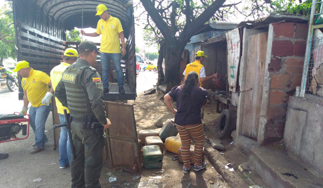 “En estas casetas grandes se encontraron desocupadas pimpinas para guardar gasolina de contrabando, objetos de reciclaje y basura. Estas acciones hacen parte de lucha para recuperar para los cucuteños el espacio público invadido”, agregó.