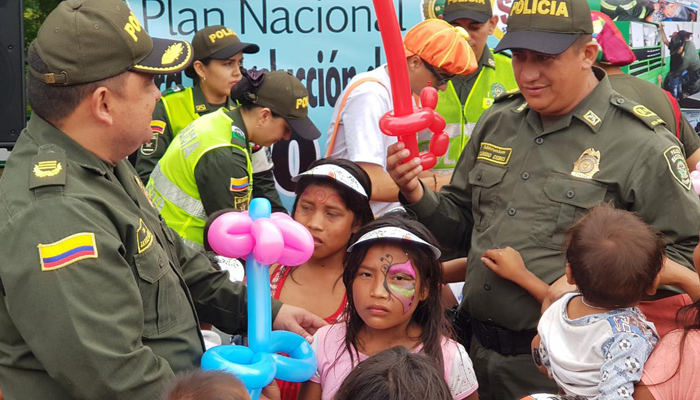 La actividad que les organizó la Policía de Cúcuta, a cargo del Grupo de Infancia y Adolescencia, allá en el parque principal de este sector del norte de Cúcuta, por un momento los sacó del riesgo y la miseria en el que viven a orillas del río Táchira, y los contagió de emociones, como la de subirse a un columpio o a un colchón inflable a dar brincos y a elevarse por el aire en su mundo de fantasía.