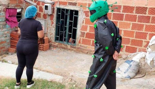 En Villa del Rosario, la administración municipal desarrolla jornadas lúdico-pedagógicas, combinadas con la desinfección y aspersión de las principales calles, así como también, la aplicación de pruebas de tamizaje. Acompañados del personaje “COVID-19”, le recuerdan a las personas que el virus sigue activo.
