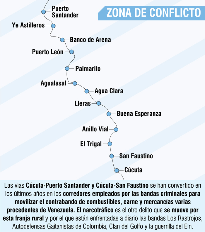 “Esto, básicamente, es lo que la hace atractiva para Los Rastrojos y las Autodefensas Gaitanistas de Colombia, cuyos mandos tienen declarada una guerra sin cuartel para hacerse al control, “De ahí los panfletos, el toque de queda y las matanzas que desde comienzos de año se han producido en Puerto Santander y en la vereda Vigilancia”, señaló Cañizares.