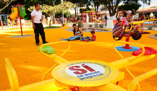 El alcalde resaltó que también le construyeron dos mesas de parqués, dos de ajedrez, dos de ping pong en granito pulido, un área infantil con 22 milímetros de grama sintética de color amarillo y círculos de colores, 20 bancas en concreto y seis tipo corbatín.