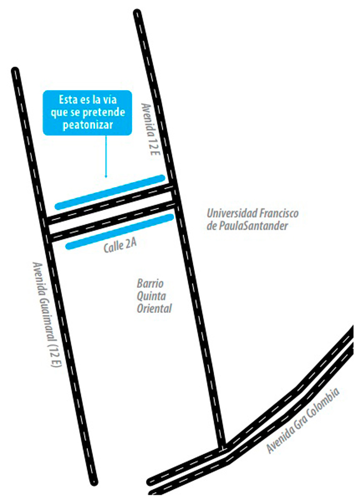 Este es parte del tramo de la vía que la alcaldía pretende peatonalizar en el entorno de la universidad Francisdo de Paula Santander.