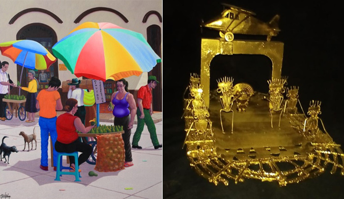 ((Derecha) Obra: 'Balsa precolombina', de Jaime Alberto Martínez M.)