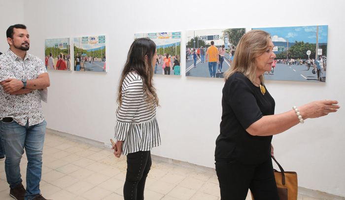 Así, se dio vida a la exposición Entre fronteras, que consta de 40 pinturas en óleo que fueron fijadas en la sala de exposiciones de la Biblioteca Pública y en ellas se aprecian diferentes situaciones que permiten transportarse a 2007, cuando el tránsito por los puentes fronterizos Simón Bolívar y Francisco de Paula Santander se hacía en vehículos y se daban aires de paz. Las imágenes recrean esta historia hasta la actualidad.