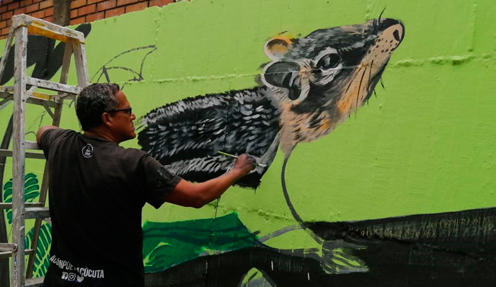 Un gigantesco mural alusivo a los recursos naturales, a la fauna y a la flora de un departamento con abundante biodiversidad, fue elaborado por el Movimiento Acción Poética Cúcuta.