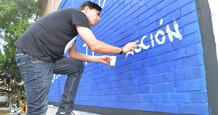 El mexicano participó en la Fiesta del Libro y aprovechó su visita a la ciudad para pintar algunos muros.