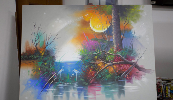 Inspirado en la fauna y en la flora de esta región del oriente colombiano, el pintor Nelson Ortega Toscano, natural de Tibú, le rinde un homenaje a su terruño con coloridas obras de arte que le han dado la vuelta al mundo.