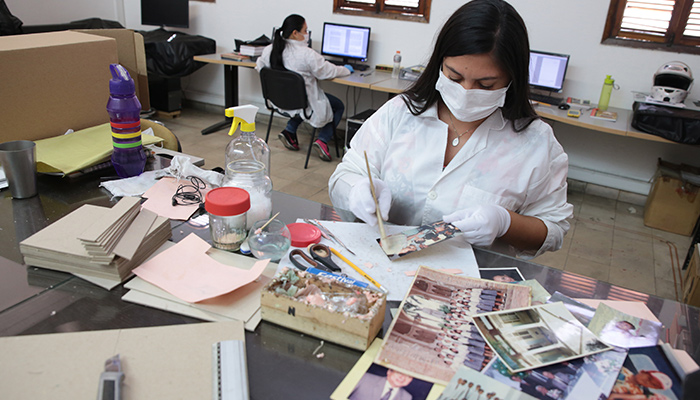 “Las imágenes son donadas o compradas por la Biblioteca. Llegan en álbumes, pegadas en cartulina, en sobres y con polvo. Lo primero que se hace es un registro y pasan a primeros auxilios”, dijo Morales.