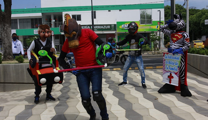 “Con disfraces de cebra, de burro con cascos en la mano, parodias de conductores, queremos concientizar a las personas sobre el respeto a las medidas de tránsito”, aseguró Gene.