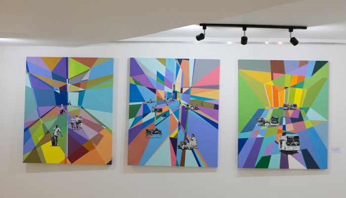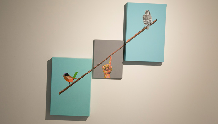 En estos últimos cuadros, de gran formato, se aprecia la fusión que hace el artista de sus conocimientos sobre arquitectura y arte, con animales como pájaros, aves que le recuerdan a su abuela, que aparecen en blanco y negro con un colorido fondo cargado de conceptos.