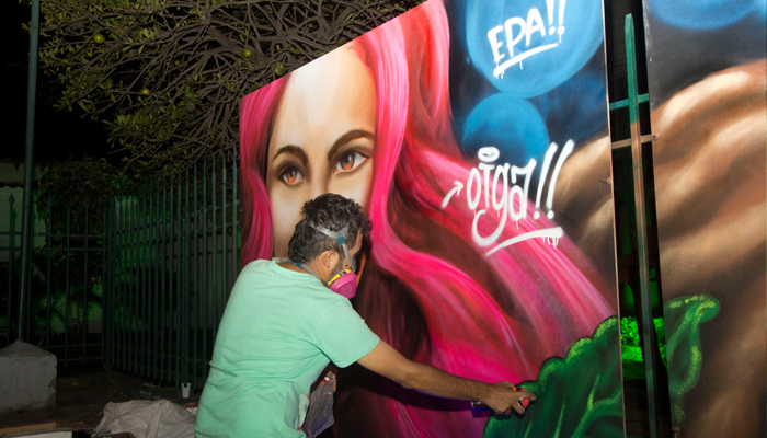 En la actividad cultural también participó la artista pamplonesa, Angélica Gallardo. Además, los jóvenes hicieron grafitis, no en paredes sino sobre materiales que se pueden transportar con facilidad para futuras exposiciones.