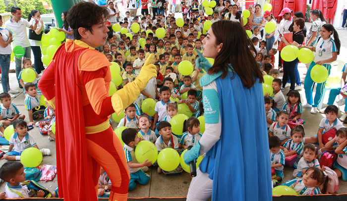 La actividad lúdica congregó a más de 400 niños, quienes disfrutaron de la puesta en escena en la que el mensaje fue claro: cada ser humano es un héroe cuando de conservar los recursos naturales se trata.