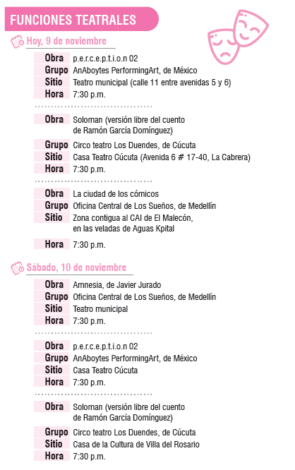 “En las ocho ediciones anteriores de la Fiesta hemos tenido la participación de más de 54.000 espectadores, lo cual es un indicador de la acogida que tienen las artes escénicas entre los cucuteños”, dijo García.