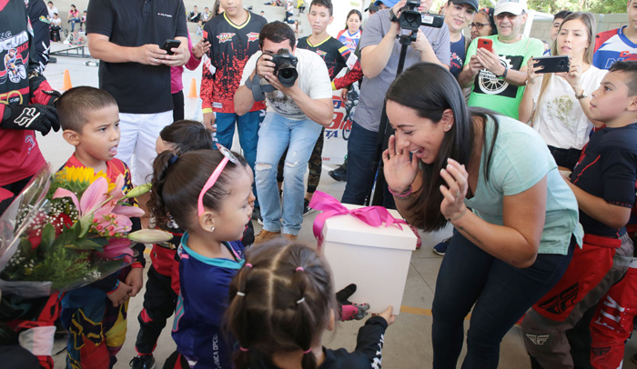 Como parte de la labor social la deportista compartió con quienes hasta ahora se inician en la modalidad del BMX en la región.