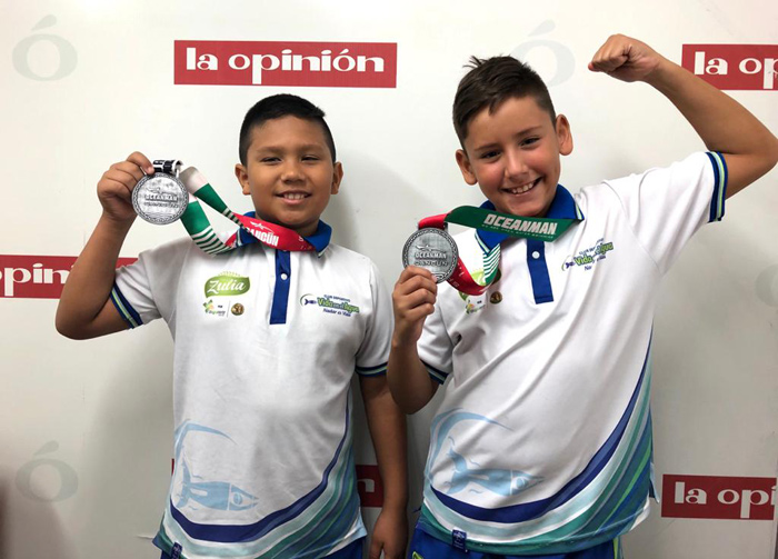 Brandon Avendaño y Juan José Jaimes fueron primero y segundo en la categoría de 10 a 13 años del Oceanman 2019.