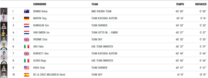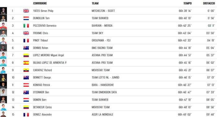 Dumoulin, ganador del Giro el año pasado y tercero este martes a 22 segundos de Dennis, recortó en más de un minuto (1:15) su desventaja respecto a Yates gracias a esta contrarreloj.