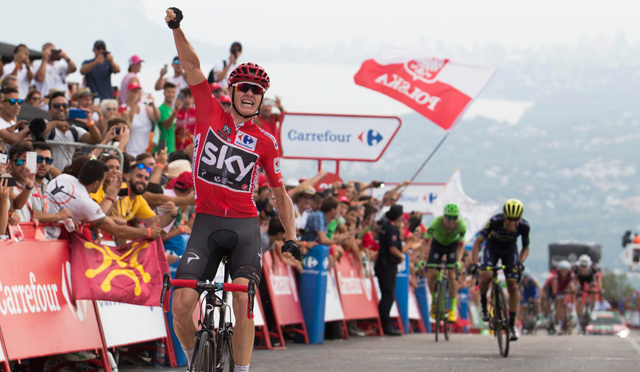 El británico Chris Froome (Sky) refuerza su liderato en la Vuelta a España tras ganar la novena etapa, siendo su cuarta victoria parcial en la competencia.