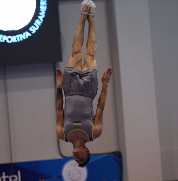 Ángel, con una ejemplar rutina, que incluyó en un principio saltos mortales fáciles y cerró con acrobacias con dobles y triples mortales, dio el argumento con el que acabó con la aspiración de Federico Cury (Argentina) y Santiago Marcano (Venezuela), quien de manera sorpresiva se coló en el podio.