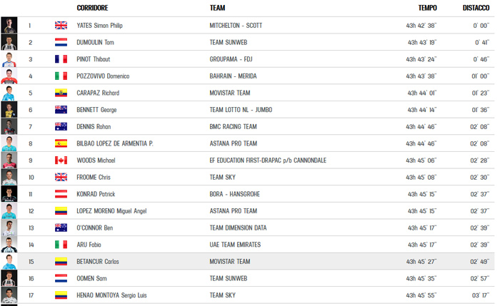 El equipo Mitchelton, privado de un segundo aspirante al podio final, está condenado ahora a apostarlo todo por Yates, que amplió su ventaja con respecto a sus principales perseguidores, el holandés Tom Dumoulin y el francés Thibaut Pinot, al arañar tres segundos adicionales en un esprint intermedio.