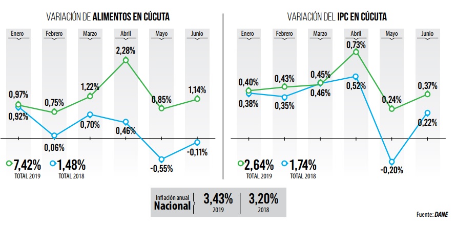 Hoy, vivir en Cúcuta es más costoso que hace un año y eso es porque el Índice de Precios al Consumidor (IPC) que mide la inflación en la ciudad se ubicó en 2,64 % en lo corrido del primer semestre, es decir 0,90 puntos porcentuales por encima del 1,74 % del mismo semestre del año pasado.