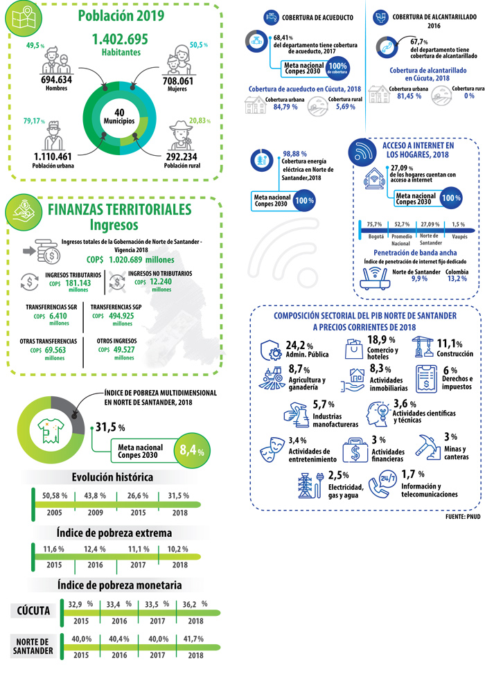 Cúcuta se ha ubicado en los primeros puestos entre los territorios de mayor pobreza monetaria. Desde el 2015, el flujo migratorio mixto proveniente de Venezuela ha generado mayores presiones sociales en la demanda de bienes y servicios públicos.