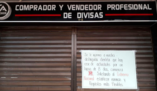 El paro laboral fue convocado el día anterior en asamblea de representantes de las casas de cambio, en donde también se instó a los empleados y propietarios de negocios a participar en una protesta en el parque Santander.