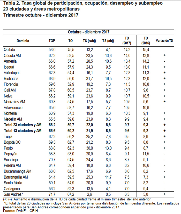 Lea además Cúcuta cierra el 2017 con la segunda tasa de desempleo más alta del país