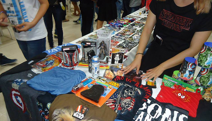 En la Galaxy-Con las tiendas que venden ropa y accesorios relacionados a la cultura pop tienen una vitrina para ofrecer sus productos a una gran cantidad de fanáticos que asisten a la convención.