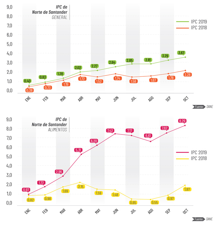 El economista agregó que en la nueva metodología para medir el Índice de Precios del Consumidor (IPC), los grupos de gastos tienen mayor ponderación, según la condición económica de los habitantes de la zona, “los alimentos tienen una gran influencia en Cúcuta que tiene un elevado índice de pobreza”.