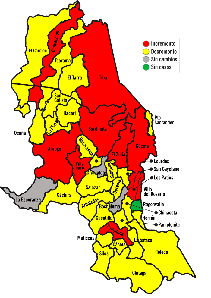 Pero el problema, señalan los investigadores, en el marco del proyecto ‘Variables predictoras y orientación suicida en adolescentes escolares’, es que las cifras de amenazas de suicidio incrementaron en el departamento. Por ejemplo, según reportó el Instituto Departamental de Salud, en 10 municipios de Norte de Santander la cifra de intento de suicidio se elevó, en otros 26 se mantuvo esta estadística, sólo en uno disminuyó y en tres no se reportaron casos. (Ver gráfico 2)