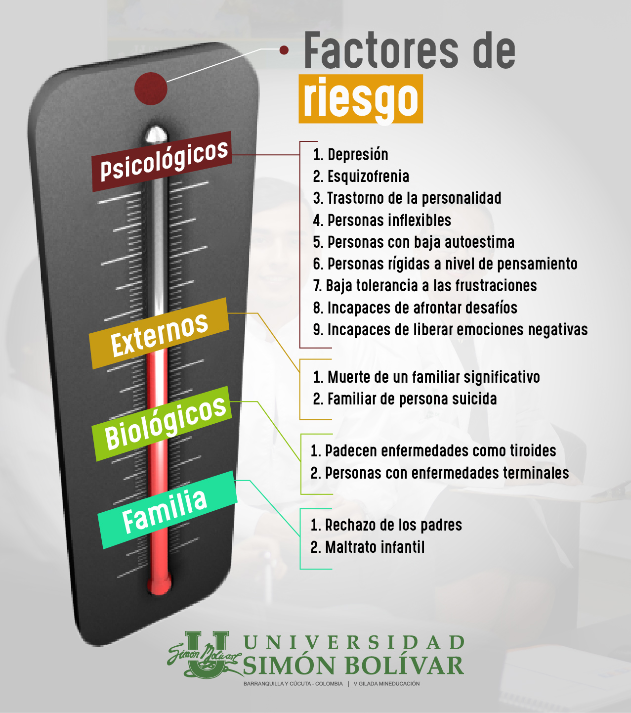 Según Nidia Johana Bonilla, líder del proyecto, existen factores de riesgo que pueden incidir en que alguna persona llegue a tener conductas suicidas (Ver gráfico 1). “Investigamos sobre el afrontamiento a los problemas por parte de los jóvenes, funcionalidad familiar y apoyo social a la familia, para encontrar cuáles variables incidían más en el intento suicida u orientación suicida”, comentó la líder de la investigación.