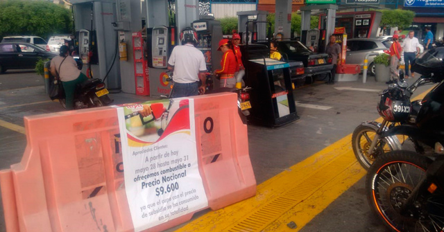 Sin embargo, cerca de las 3 de la tarde, en dicha estación ya colgaba un letrero donde se anunciaba que a partir del 28 de mayo se cobraba el galón a 9.600 pesos.