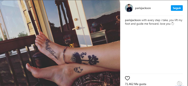 En su cuenta en Instagram, la joven de 19 años publicó una imagen de su pie izquierdo, en el que tiene el tatuaje con este mensaje: “a cada paso que doy, tú alzas y mi pie y me guías hacia adelante. Te quiero”.