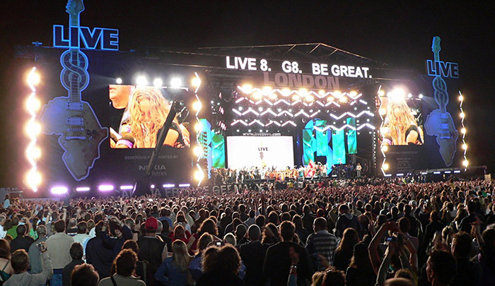El 2 de julio de 2005, alrededor de 1,5 millones de personas asistieron a los diez conciertos del “Live 8” impulsados por Bob Geldof contra la pobreza en África y para presionar a los dirigentes del G8, que reunieron a Pink Floyd, Sting, U2, Paul McCartney, Madonna, Elton John, Youssou N’Dour y Stevie Wonder. (AFP)