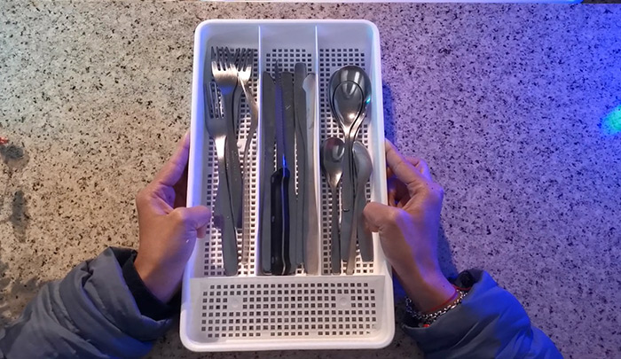 Y un tarro  de agua vacío sirve de tambor a la medida que la cuchara repica hasta lograr la sinfonía.