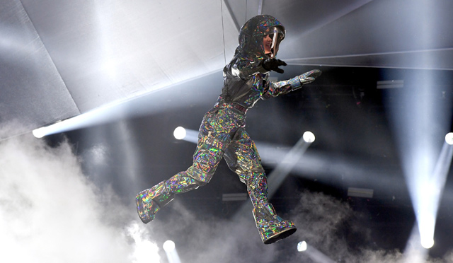 El rapero inauguró el espectáculo de tres horas, que fue presentado por una poco memorable Katy Perry.