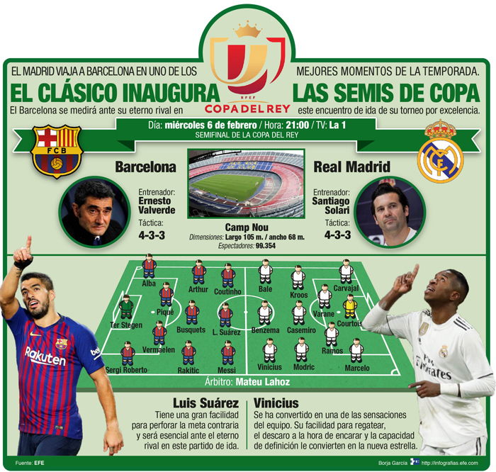 La Copa del Rey, la más antigua competición del fútbol español, a menudo se ha visto marcada por clásicos Real Madrid-Barcelona memorables, a cuya lista podría unirse el que tendrá lugar hoy en Camp Nou a las 3 p.m., en la ida de semifinales de la competición.