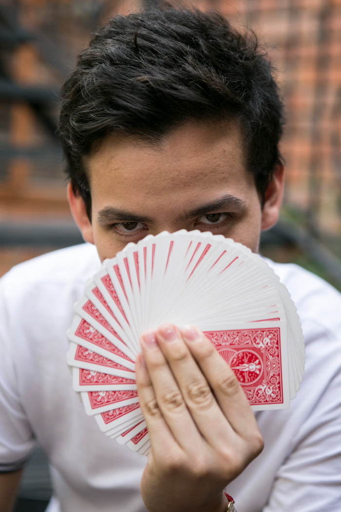 Ahora con 18 años es el alumno con el promedio más alto del segundo semestre de Diseño Gráfico de la Universidad del Norte. Siempre anda con las cartas en los bolsillos o en las manos, se han convertido en sus pies.