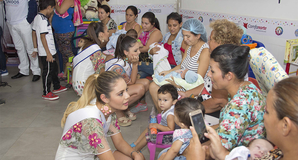 Laura González, Señorita Colombia, se le acercó al niño Kaleth Bayona Botello, de seis meses de nacido y le dijo: “tú eres un fortachón”. Además participaron de la ‘tetatón’, una actividad que celebra la semana mundial de la lactancia materna, en la que se les enseña a las mamás canguro a hacer esa lactancia exclusiva.