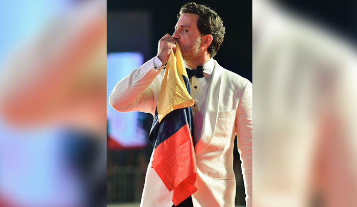 El actor venezolano Edgar Ramírez desfiló con la bandera de Venezuela en la alfombra roja de la edición 76 del Festival de Cine de Venecia.