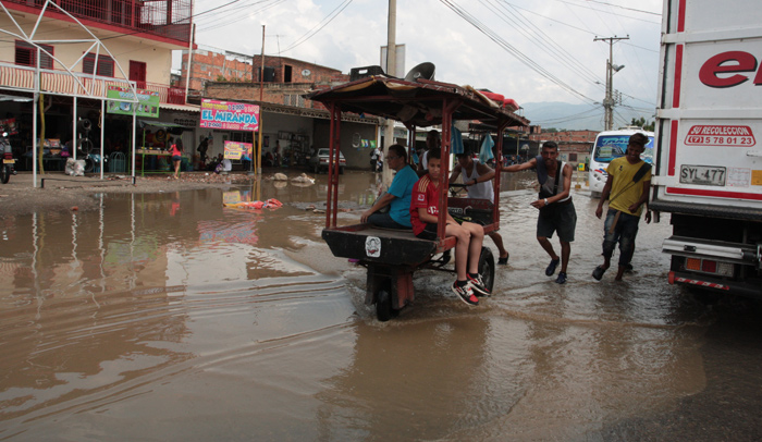 Al caos que ya se vivía en La Parada, en Villa del Rosario, por cuenta de la cantidad de ventas informales que dejan poco espacio tanto a conductores como a peatones, ahora se suma el represamiento de aguas lluvias que mantienen inundada la avenida.