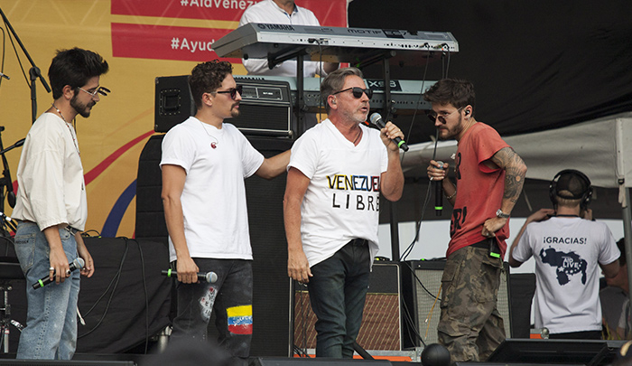 ‘El Puma’ José Luis Rodríguez, Reynaldo Armas, Cholo Valderrama, Jorge Villamizar, Jorge Glem y Reik fueron los primeros en cantar, coincidiendo sus discursos en una misma consigna: “Libertad para Venezuela”.